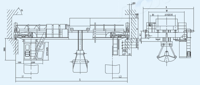QZ型抓斗橋式起重機廣泛適用于貨場、碼頭等,進行散貨物料的運輸。QZ型抓斗橋式起重機,主要有橋架、大車運行機構、小車、抓斗和電氣設備等組成,其工作級別為A6,環境工作溫度為-20℃-40℃ ,其起重量包括抓斗重量。本產品為四級室操縱。